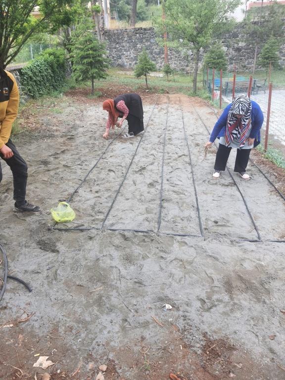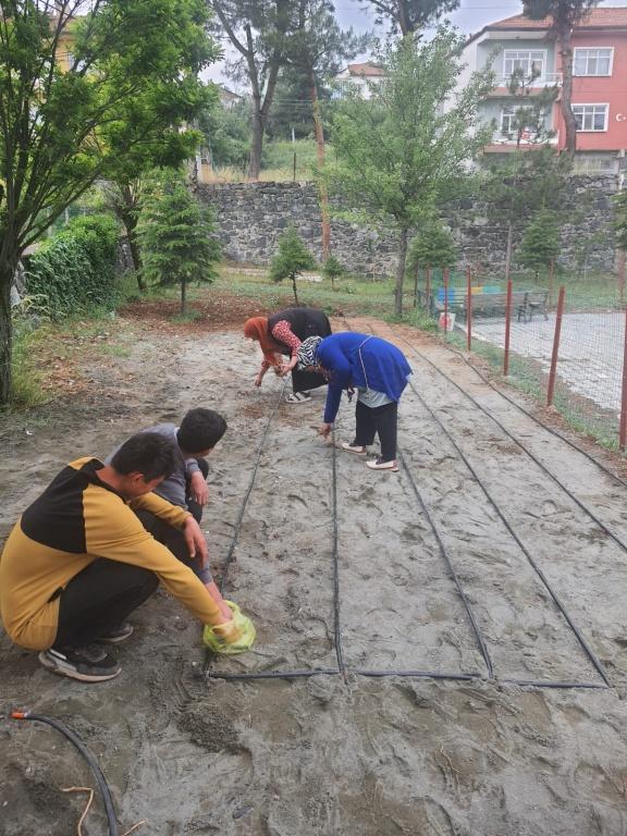 Gerçekleştirilen çalışmalarda damlama sulama sistemleri döşendi, toprak tesviye edildi ve belirlenen alanlara sebze-meyve tohumları ekildi. Hem çevre bilincini artırmak hem de öğrencilerin doğayla iç içe bir öğrenme deneyimi yaşamasını sağlamak amacıyla yapılan bu proje, aynı zamanda iş birliği ve sorumluluk bilincini de pekiştiriyor.